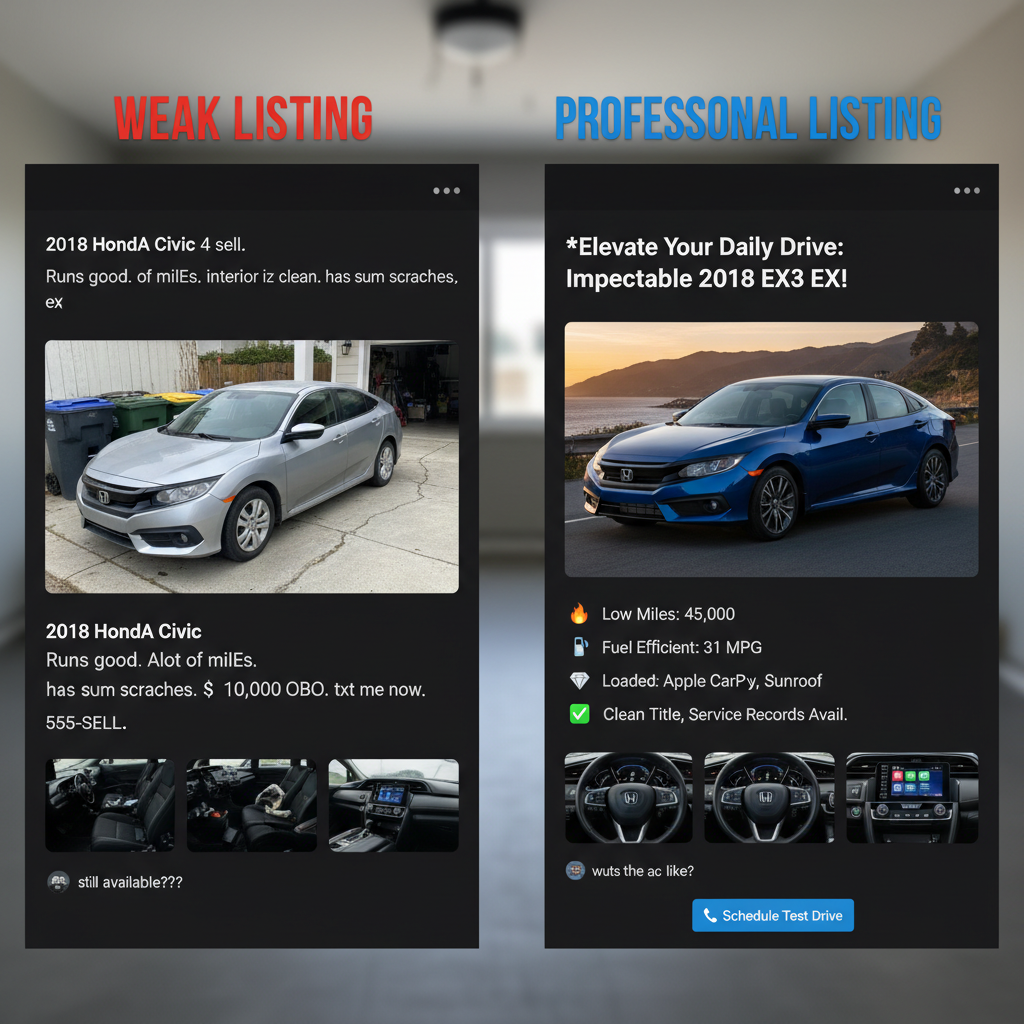 Efekt? Profesjonalny opis nie tylko budzi zaufanie, ale i pozwala na wyższą cenę oraz szybszy kontakt. Kupujący widzi, że nie masz nic do ukrycia.