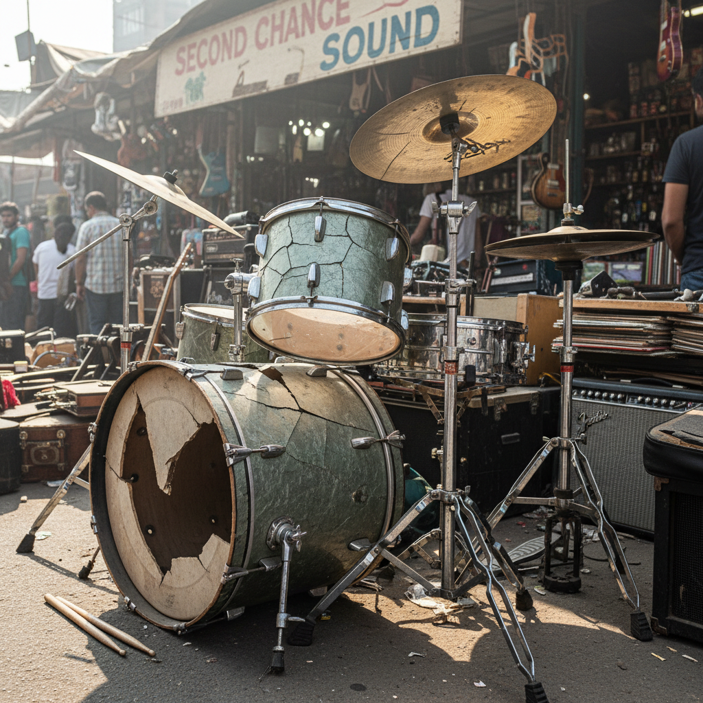 Marek, początkujący perkusista, kupił zestaw „w idealnym stanie”. Po odbiorze odkrył pęknięcia w talerzach, skorodowane obręcze i kompletny brak dokumentacji. Sprzedawca nie odbierał już telefonu, a reklamacja przez portal utknęła w martwym punkcie.