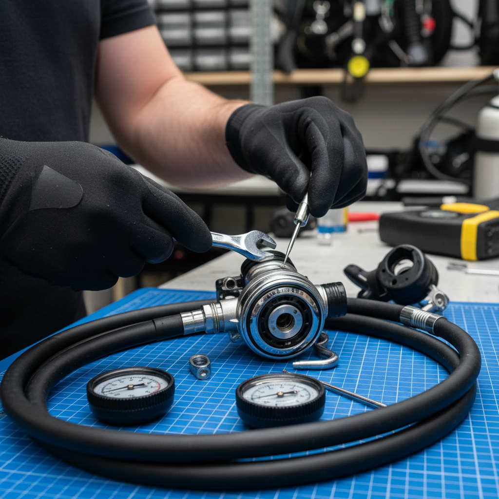 Regularna konserwacja i kontrola techniczna niezbędna do bezpiecznego użytkowania sprzętu nurkowego.